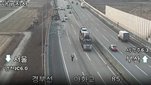 고속도로 추돌 사고로 파이프 '와르르'…뒤따르던 차 20대 피해 입력 2026.03.09 06:05 유영규 기자 Seoul 이미지 확대하기 다음 추천 영상 영상... 영상... 영상... ▲ 경부고속도로 사고 현장 7일 오전 5시 48분 경북 경주시 서면 서울 방향 경부고속도로에서 화물차가 앞서가던 화물차를 추돌했습니다. 이 사고로 뒤에서 들이받은 화물차의 운전자 1명이 경상을 입고 병원으로 이송됐습니다. 또 화물차에 실려 있던 파이프가 도로 위로 쏟아지면서 뒤따르던 차량 약 20대가 타이어 펑크 등 피해를 봤습니다. (사진=고속도로 폐쇄회로TV 캡처, 연합뉴스) Copyright Ⓒ SBS. All rights reserved.무단 전재, 재배포 및 AI학습 이용 금지