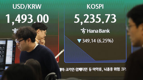 ▲ 9일 서울 중구 하나은행 본점 딜링룸에 코스피가 표시돼 있다. 이날 코스피는 하락 출발해 장 초반 5,200대까지 내려앉았다.