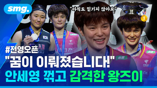 지난 9일(한국시간) 영국 버밍엄 유틸리타 아레나에서 열린 2026 세계배드민턴연맹 월드투어 슈퍼 1000 전영오픈 여자단식 결승에서 안세영이 중국의 왕즈이에게 2대 0으로 졌습니다. 안세영은 36연승 행진을 마감했고, 왕즈이는 안세영과 맞대결에서 10연패의 사슬을 끊어냈습니다. 두 선수의 경기 후 인터뷰를 <스포츠머그>에서 전해드립니다.