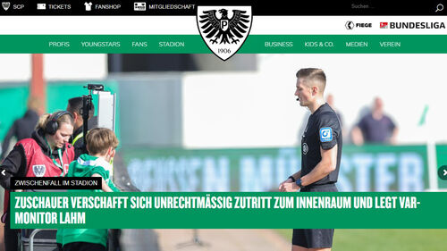 프로이센뮌스터 구단은 성명을 통해 "마스크를 착용한 관중 한 명이 내부 구역에 무단으로 난입해 기술 장비의 전원을 뽑았다"고 설명했습니다.