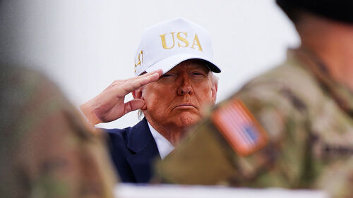 ▲ 미군 장병 유해 귀환식에 'USA' 적힌 야구모자 쓴 채 등장한 도널드 트럼프 대통령