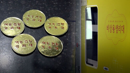 한 사람이 무더기로 가져가는 걸 막기 위해 코인을 받아서 넣어야 생리대가 나오게 했습니다.