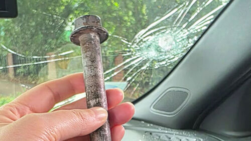 [사건X파일] 앞유리 뚫고 박힌 대형 쇠볼트…"1㎜만 옆으로 왔으면 사망"