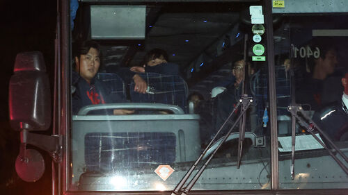 특히 대표팀 베테랑 투수 류현진(한화 이글스)은 투수들이 탄 버스의 가장 앞자리에 앉아 눈길을 끌었습니다.