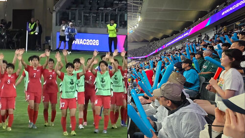 아시아축구연맹(AFC) 여자 아시안컵 조별리그에 참가한 북한 여자 축구대표팀이 북한이라는 호칭 대신 '조선'이라는 북한 국호를 사용한 우리 응원단을 향해 경기 종료 이후 인사를 하는 장면이 포착됐습니다.