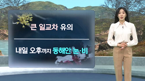 동해안 지방은 내일 오후까지 비나 눈이 더 이어지겠습니다.