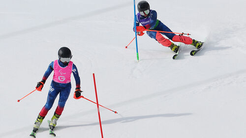 시각장애 부문에서는 가이드가 선수보다 먼저 출발해 무선 통신 기기로 코스 상황과 방향을 지시하고, 선수는 가이드의 목소리에 의지해 설원을 활주합니다.