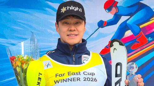 정동현은 오늘(13일) 강원도 평창 모나 용평 리조트에서 열린 2025-2026 FIS컵 남자 회전 경기에서 1, 2차 시기 합계 1분 23초 65로 우승했습니다.