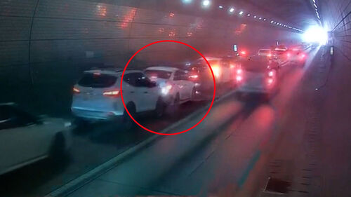 터널 진입 후 약 500미터 지점에서 7중 추돌 사고가 났고 이 사고로 차량 흐름이 막히자, 300미터 거리 뒤에서 다시 5중 추돌 사고가 났습니다.