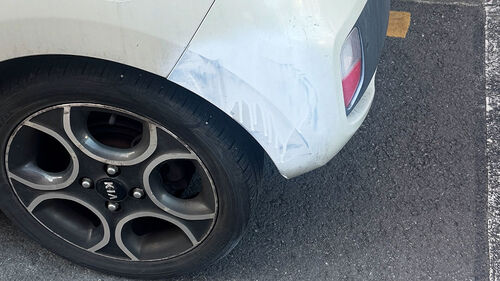 도장이 벗겨진 차량 뒷부분 보이시죠. 그리고 기존 색과는 맞지 않는 색의 래커가 덧칠된 모습입니다.