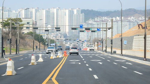 개통된 도로와 연결된 1단계 도로(길이 560m)에 2012년 11월 공사 완료까지 95억 원이 들었지만, 이번에 개통된 비슷한 길이의 2단계 도로에는 219억 원이 투입됐습니다.