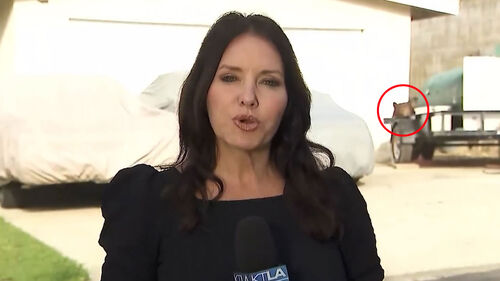 생방송으로 곰 습격 사건을 전하던 기자 뒤로 실제 곰이 등장하는 장면이 포착됐습니다.