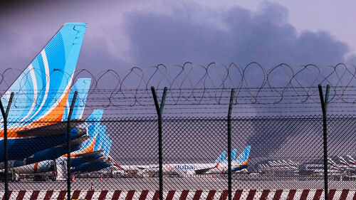 ▲ 드론 공격으로 검은 연기가 피어오르는 아랍에미리트 두바이 공항
