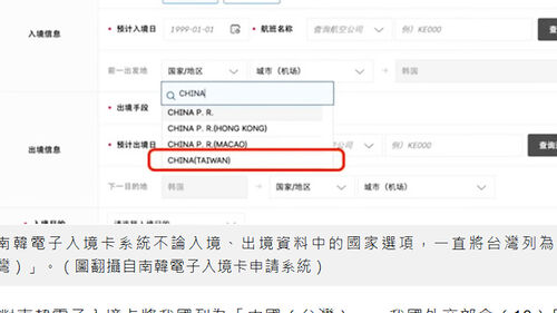 한국이 전자입국신고서에 타이완을 '중국(타이완)'이라고 표기하는 것에 반발해 타이완이 일부 출입국과 외국인 관련 서류에 한국 대신 '남한'이라고 표기하는 카드를 꺼내 들었습니다.