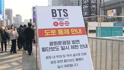 방탄소년단(BTS)의 서울 광화문광장 공연이 내일(21일)로 다가온 가운데 오늘 밤부터 일대 교통 통제가 시작됩니다.