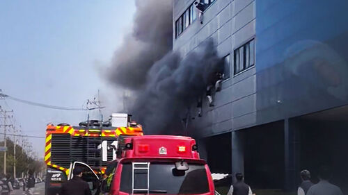 공장의 다른 측면도 상황은 마찬가지로, 화재 당시 직원 상당수는 미처 공장을 빠져나오지 못했고, 연기로 자욱한 공장 안에서 창 밖으로 얼굴을 내민 채 구조를 기다렸습니다.