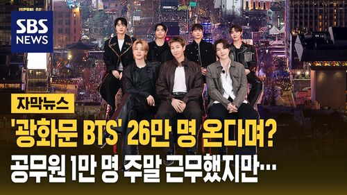 서울 광화문 일대에서 열린 '방탄소년단(BTS) 컴백 공연'에 안전 요원으로 공무원들이 대거 동원되자 휴일 민간 공연에 1만 명이 넘는 공무원을 투입할 필요가 있었느냐는 지적이 제기되고 있습니다.