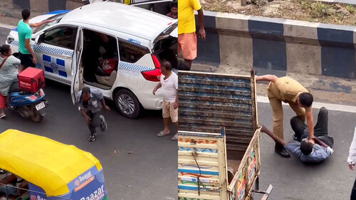 도로 한복판에서 황당한 소동이 벌어졌습니다.