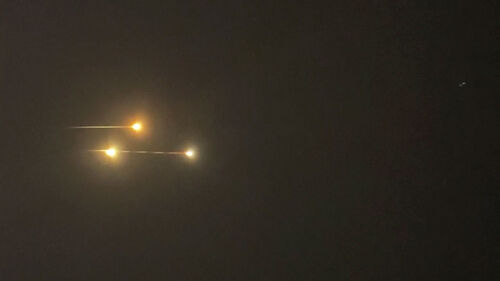 현지 시각 21일 밤 이스라엘 북부 나하리야 상공에서 이란의 탄도 미사일과 이스라엘의 요격 미사일이 서로 얽힙니다.