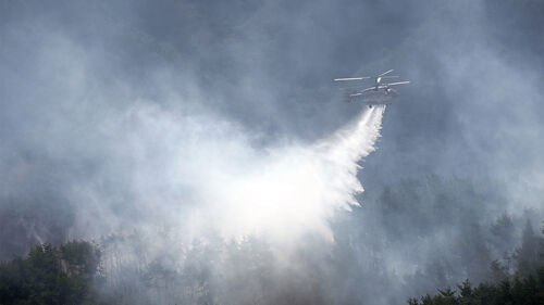 ▲ 산림 당국 헬기가 지난달 23일 경남 함양군 마천면에서 산불 진화 작업을 하고 있다.