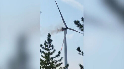불은 꺼졌지만 풍력발전기 날개 잔해가 떨어질 가능성이 있어 경찰과 지자체는 인근 도로를 통제하고 있습니다.