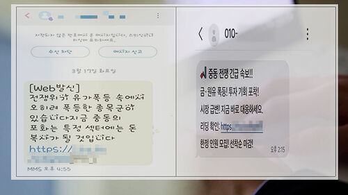 또 "중동 상황으로 항공편이 취소됐다"며 가짜 항공사 사이트로 연결해 카드 정보를 빼가는 스미싱도 등장했고요.