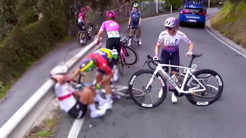 이탈리아 밀라노-산레모 여자 사이클 경기에서 발생한 사고입니다.