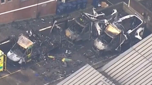 주차장에 주차돼 있던 구급차들이 형체를 알아볼 수 없게 불에 탔습니다.