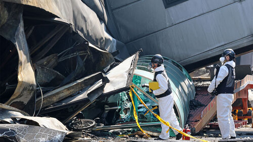 ▲ 23일 오전 74명의 사상자가 발생한 대전 대덕구 안전공업에서 화재 원인 등을 규명하기 위한 합동감식이 진행되고 있다.