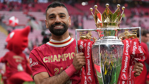 ▲ 리버풀에서 프리미어리그 우승 트로피를 들어 올리던 살라