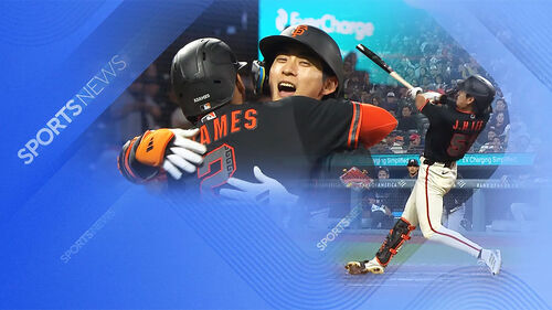 팬이 점프해 잡지 않았다면 홈구장 오라클 파크의 우측 관중석 뒤 바다, 매코비만에 떨어지는 이른바 '스플래시 히트'가 될 뻔한 타구였습니다.