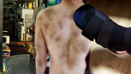 40대 남성 A 씨의 몸에 시퍼런 멍자국이 선명하게 남아있습니다.