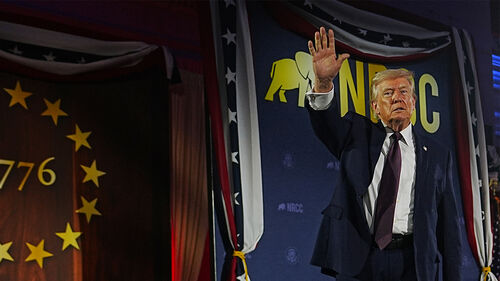 ▲ 25일(현지시간) 공화당의회위원회(NRCC) 만찬 행사에서 연설하는 트럼프 미국 대통령