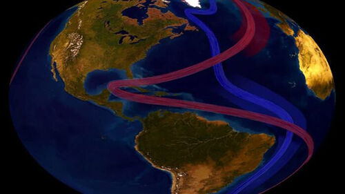 지구는 대기와 해양을 통해 열을 적절하게 분배합니다. 적도는 열이 많이 쌓이기 때문에 열은 해양과 대기를 통해 극 지역으로 이동합니다. 대기 대순환과 해양 순환이 생기는 원인이자 존재 이유죠. 북대서양 순환 역시 적도 쪽에 쌓인 열과 염분을 극 지역으로 수송하는 역할을 합니다. 따뜻한 물이 북쪽으로 이동하면 차가워져 가라앉고 다시 심층 순환을 통해 저위도로 이동하는 대규모 해수 순환입니다.