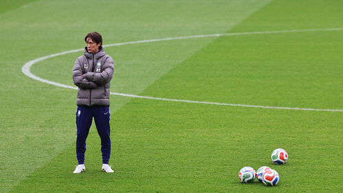 ▲ 코트디부아르전을 하루 앞둔 한국 축구 국가대표팀의 홍명보 감독이 27일(현지시간) 영국 밀턴킨스 스타디움 MK에서 선수들의 훈련을 지켜보고 있다.