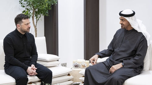 볼로디미르 젤렌스키 우크라이나 대통령이 아랍에미리트(UAE)를 방문해 셰이크 무함마드 빈 자이드 알나하얀 UAE 대통령과 안보와 국방 협력에 대해 논의했습니다.
