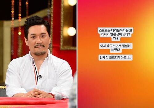 JK김동욱은 29일 자신의 SNS에 "스포츠는 나라 돌아가는 꼬라지와 연관성이 있다? Yes"라며 "어제 축구 보면서 절실히 느꼈다. 언제적 코트디부아르니.."라는 글을 올렸다.