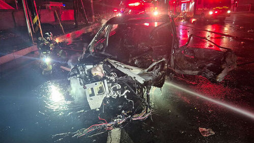 어젯(30일)밤 충남 보령시에서 달리던 전기차가 승용차를 들이받고 큰 불이 났습니다. 30대 남성으로 추정되는 전기차 운전자는 심한 화상을 입고 숨졌습니다.