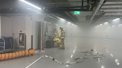 ▲ 화재 진화 시도하는 소방 당국