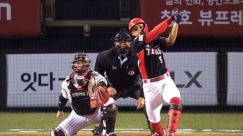 4회 오른쪽으로 날린 장타성 타구가 LG 홍창기의 호수비에 막혀 아쉬움을 삼킨 김도영은 6회 좌익선상 2루타를 날려 3안타를 완성했습니다.