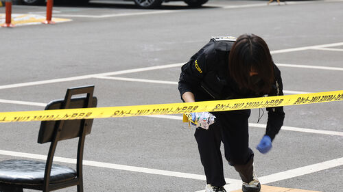 ▲ 27일 오전 경남 창원시 성산구 한 아파트 인근 주차장 흉기 살해 발생 현장
