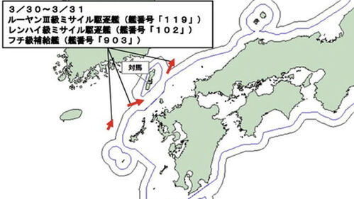 이어 중국 해군 미사일 구축함 2척, 보급함 1척으로 이뤄진 함대와 또 다른 미사일 구축함 1척이 지난달 30∼31일에도 각각 비슷한 경로로 쓰시마섬과 규슈 사이를 통과해 동해 쪽으로 항해했다고 방위성이 전했습니다.