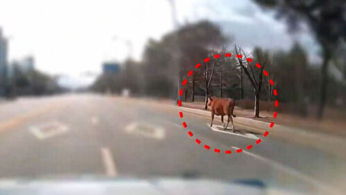 소 한 마리가 축사를 탈출해서 거리를 뛰어다니는 소동이 벌어졌습니다.