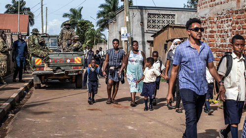 ▲ 2일(현지시간) 우간다 캄팔라의 한 어린이집에서 한 30대 남성이 휘두른 흉기에 어린이 4명이 사망한 뒤 학부모들이 자신의 아이를 데려가고 있다.