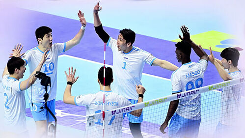 3:2로 앞선 상황에서 정지석이 상대 허를 찌르는 서브 에이스에 성공했고, 현대캐피탈의 불안한 리시브로 얻은 기회에서 마쏘가 날아올라 강스파이크를 꽂았습니다.