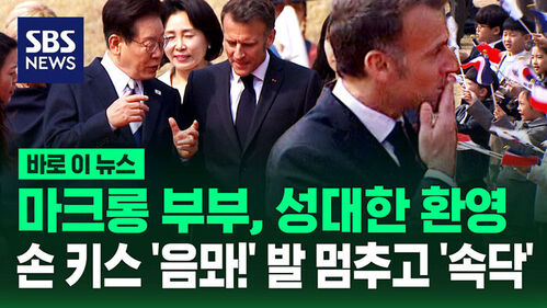[바로이뉴스] 손 키스 '음뫄!' 발 멈추고 '속닥'…마크롱 부부 성대한 환영