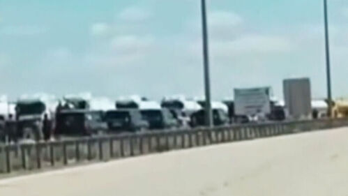 이라크와 시리아 사이 국경 도로에 유조차가 길게 늘어서 있습니다.