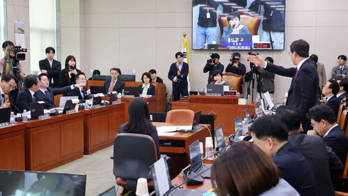 ▲ 국민의힘 신동욱 의원이 3일 국회에서 열린 '윤석열정권 정치검찰조작기소 의혹사건 진상규명' 국정조사특별위원회 전체회의에서 더불어민주당 의원들과 언쟁을 벌이고 있다.