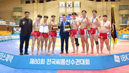 ▲ 제80회 전국씨름선수권대회에서 우승한 기장갈매기씨름단