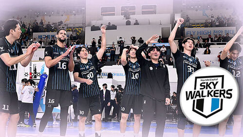 접전을 이어가던 1세트 막판 신호진의 블로킹으로 리드를 잡았고, 레오가 정지석의 공격을 가로막아 기선 제압에 성공했습니다.
